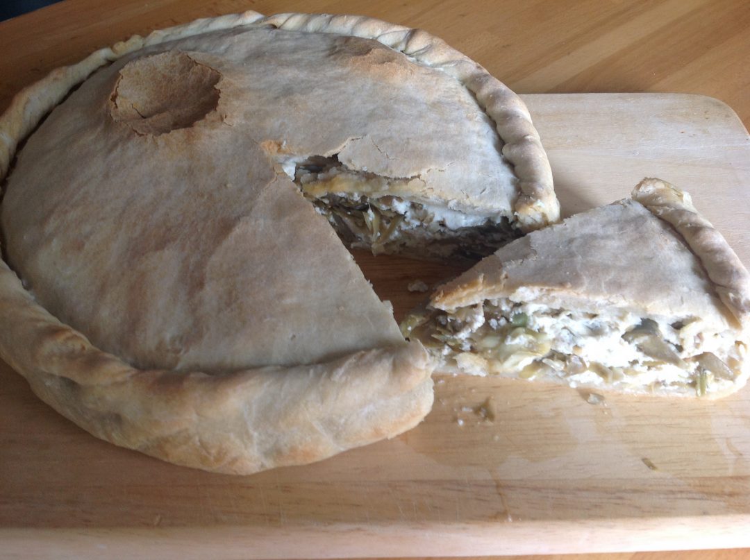 Per tradizione per l’antipasto pasquale cucino questa torta salata con un ripieno di carciofi e ricotta. Preparo anche la pasta che richiede poco tempo ma per chi volesse si può sostituire tranquillamente con la pasta sfoglia già pronta.